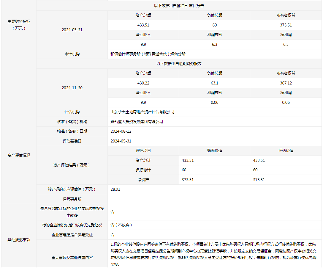 - 轉(zhuǎn)讓方:煙臺(tái)藍(lán)天投資控股集團(tuán)有限公司